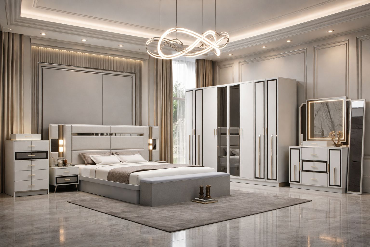 قم بتجديد غرفة نومك مع هذا الطقم العصري المصمم ليمنحك الفخامة والراحة مع أعلى مستوى من العملية.