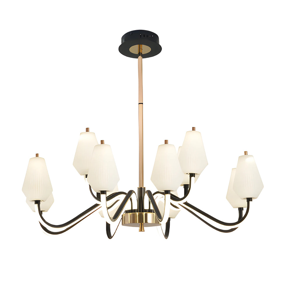 Make a bold statement with this Modern Chandelier Pendant featuring 384 watts of powerful, energy-efficient LED lighting. With 3 adjustable color options (warm, neutral, cool), it offers versatile illumination to suit any mood. The elegant opaline design, paired with a sleek black and gold finish, adds contemporary luxury to your space. Backed by a 2-year warranty for peace of mind.